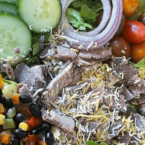 Brisket, cheddar, Texas caviar, tomato, cucumber, red onion