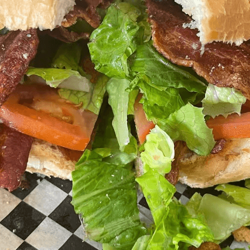 Crispy bacon, fresh lettuce, ripe tomato slices, and creamy mayo on toasted bread. Classic sandwich with juicy, smoky flavors and a satisfying crunch